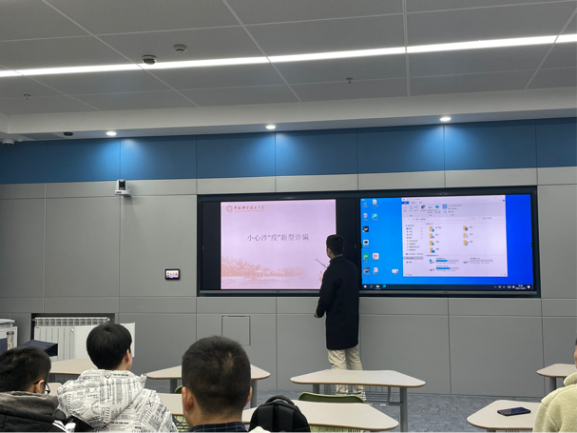 紧接着,由靳淑敏、姚志炜两位同学为大家进行防诈骗知识宣传。靳淑敏为大家介绍了电信诈骗的常见手段,分析了大学生陷入电信诈骗的原因。她从心理层面进行重点分析,提到了需求层次理论、人格认知理论、说服理论等知识,告诫同学们要正确认识自我和正确对待自己的需求,提高风险防范意识;随后姚志炜给同学们播放了防范电信网络诈骗宣传短片,短片生动地介绍了《防范电信网络诈骗宣传手册》中涉及的十种常见电信网络诈骗类型,展示了典型案例、揭露了诈骗手法,给同学们强调了反诈防骗提示:未知链接不点击,陌生来电不轻信,个人信息不透露,转账汇款多核实。
