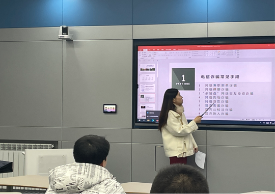最后,秦洁老师对本次班会进行总结,她肯定了班委和同学们的充分准备,也给同学们分享了自己身边发生的诈骗事件。她表示,现在诈骗分子实施诈骗越来越精准,希望同学们更加注重个人信息的保护,注重提升内在水平和专业能力。
