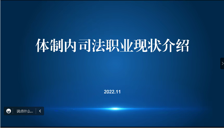 缪成学长现就职于安徽省人民检察院,有着刑事检察、职务犯罪侦查、政策研究、新媒体宣传、信息技术等多个岗位工作经历,他围绕司法职业现状、体制内司法机关的一点两面、体制内工作岗位要求的转变、体制内就业路径的选择以及体制内跨平台流动的方法和路径五个方面展开,详细介绍了体制内司法职业现状。