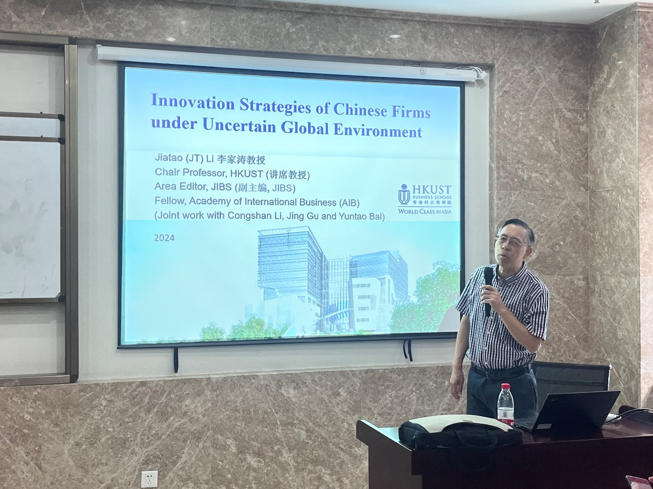为拓宽学术视野,活跃学术氛围,8月20日上午,公共事务学院邀请香港科技大学李家涛讲席教授来访我院开展学术交流,为师生作题为“Innovation Strategies of Chinese Firms under Uncertain Global Environment”的高水平学术报告。我院执行院长魏玖长教授出席并主持报告会,来自我院及学校其他院系30余名师生参加了报告会。