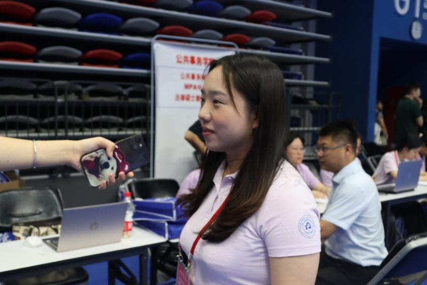 学生志愿者代表,2023级公共管理专业的学姐朱同学负责引导新生办理报到手续,协助搬运行李,还当起了“校园讲解员”,耐心解答新生的各种问题。在采访中,朱同学表示志愿服务精神是一种传承,去年的她刚刚踏入中国科大校园之际便感受到了来自迎新志愿者们的热情帮助,所以今年她也积极投身迎新志愿活动,希望把学院志愿服务的精神传承下去。