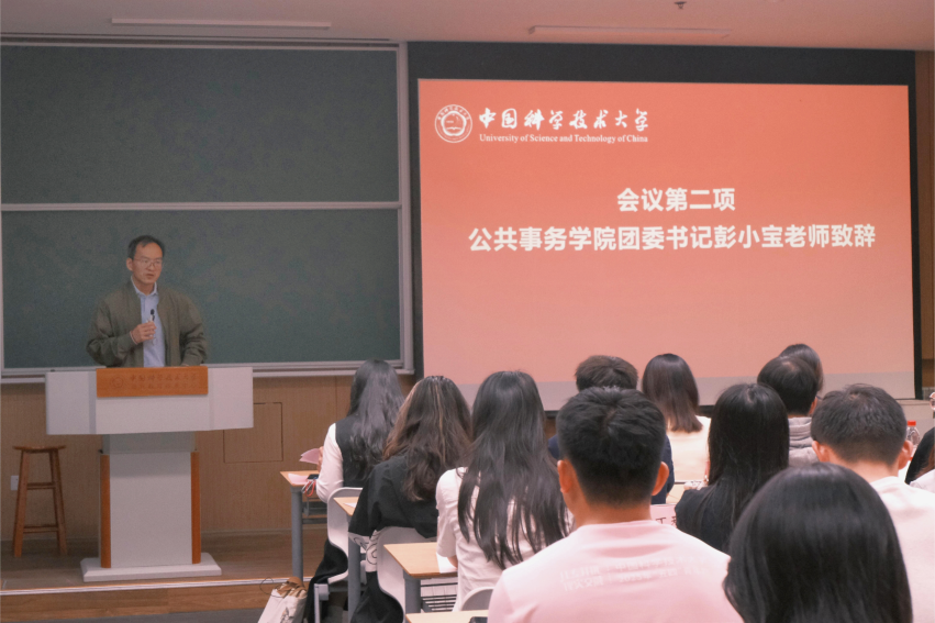 学院团委书记彭小宝老师、学工秘书王若妍老师出席了会议。公共事务学院团委学生兼职副书记孙佩韦同学、校研究生会代表诸敏燕同学、国家同步辐射实验室(核科学技术学院)研究生会代表杜荣宙同学、管理学院研究生会代表熊茜同学、地球与空间科学学院研究生会代表国子孺同学、合肥微尺度物质科学国家研究中心研究生会代表田茹心同学、科学岛分院研究生会代表桑宏川同学、火灾安全全国重点实验室研究生会代表占燕萍同学、人文与社会科学学院研究生会代表丁天宇同学等嘉宾出席了会议。公共事务学院39名研究生代表参加了本次会议。