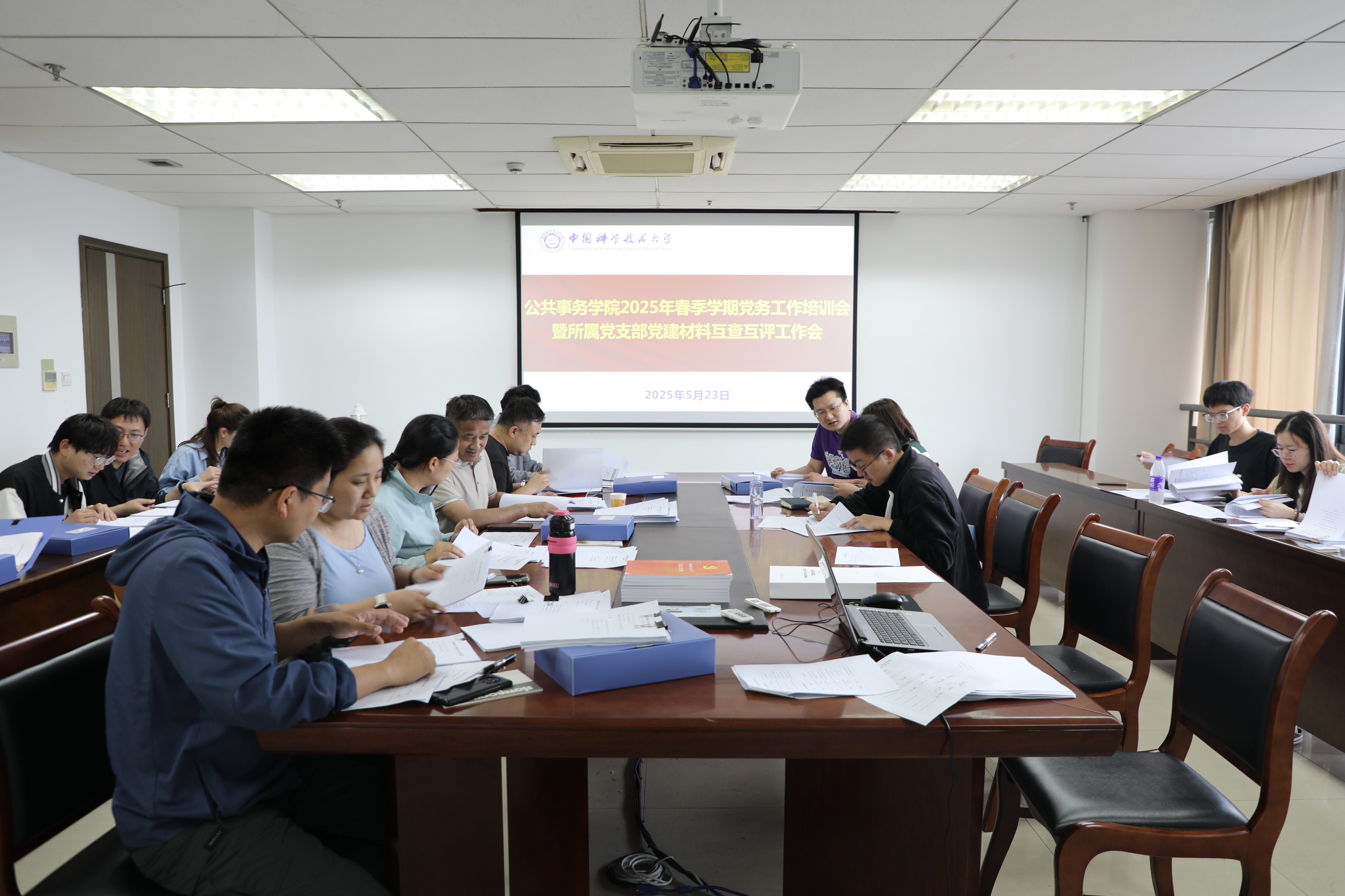 为深入贯彻中央八项规定精神学习教育,夯实党建工作基础,进一步提升党支部委员政治素养与业务能力,5月23日下午,公共事务学院在管理科研楼1108会议室召开2025年春季学期党务工作培训会暨所属党支部党建材料互查互评工作会。会议由学院党委副书记蒋文娟主持,各党支部委员参会。