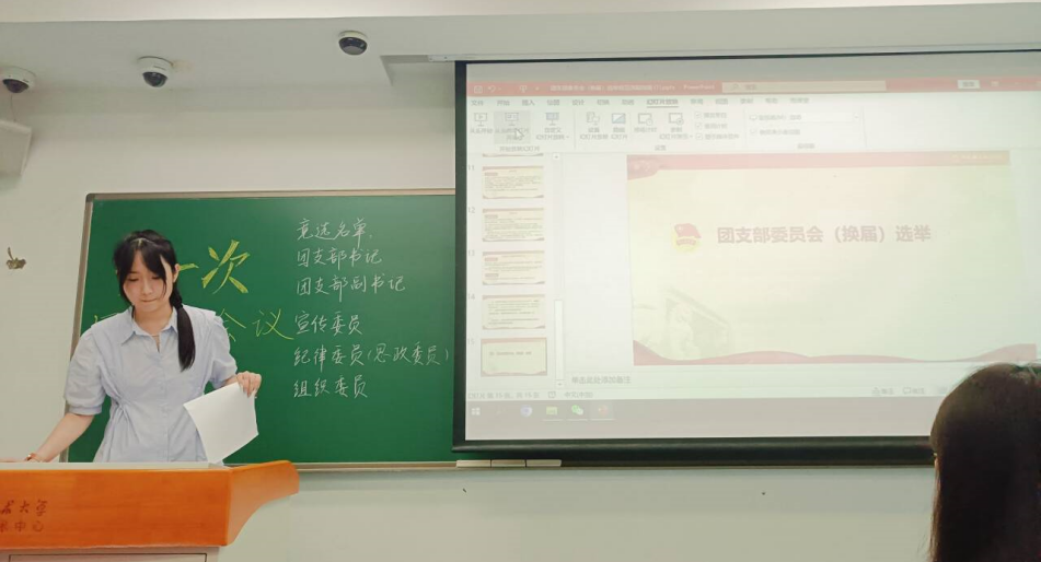 班主任邵倩雯老师作总结讲话。她首先对对当选委员表示祝贺,勉励其继承和发扬优良传统,团结带领全体团员青年,紧紧围绕中心工作,不断加强自身建设,创新活动形式,提升服务能力,努力开创团支部工作新局面。并鼓励支部全体团员不断加强理论学习,积极投身实践,凝聚青春力量,展现卓越风采。