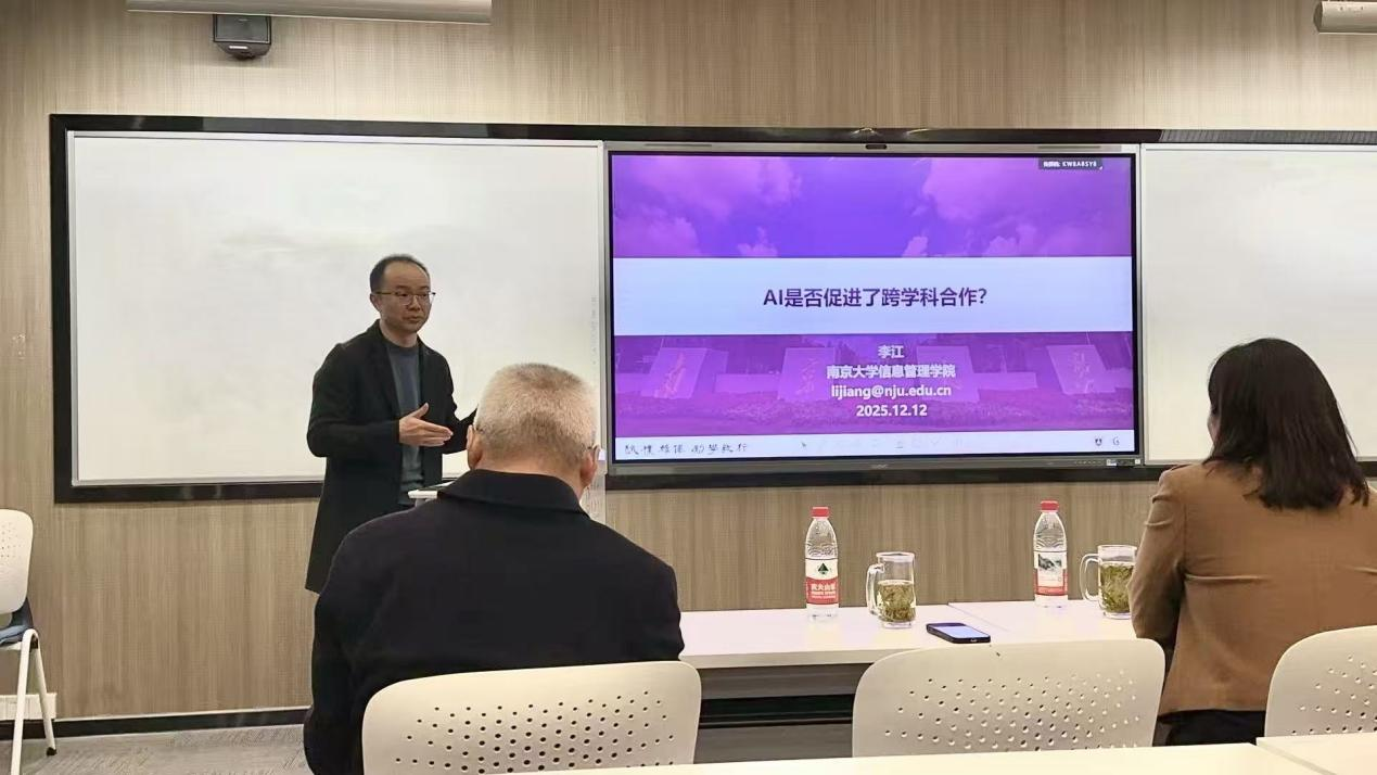 为深入探讨人工智能时代下学科交叉融合的新趋势与新挑战,12月11日下午,南京大学信息管理学院李江教授应邀为学院师生作题为《AI是否促进了跨学科合作》的学术报告,吸引了校内师生的广泛关注与积极参与。