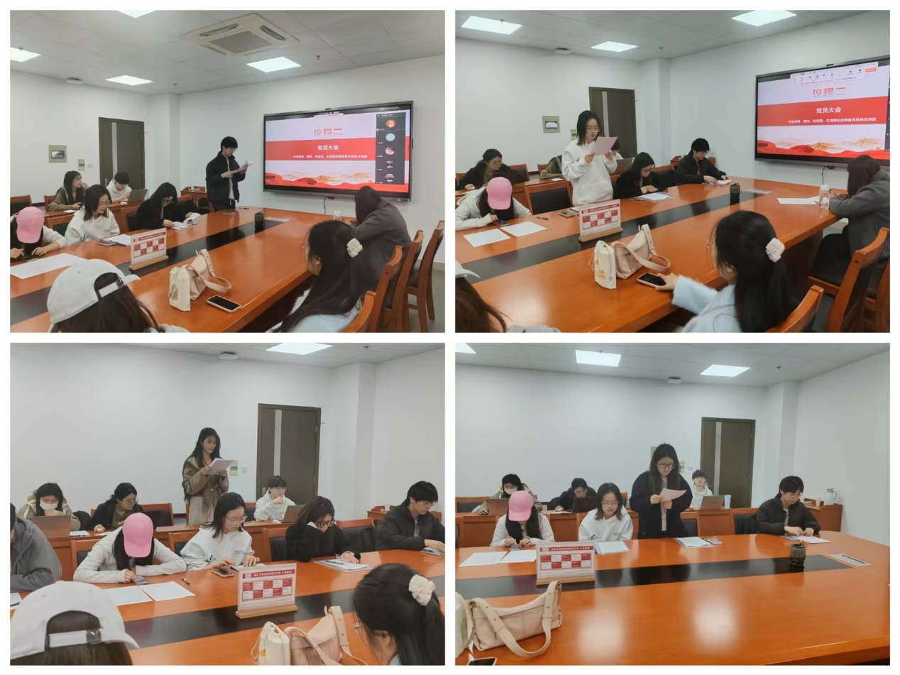 支部随后召开党员大会。大会上对预备党员李琳、黄悦、张漪雯、王洵的转正事宜进行了逐一讨论和无记名投票表决。