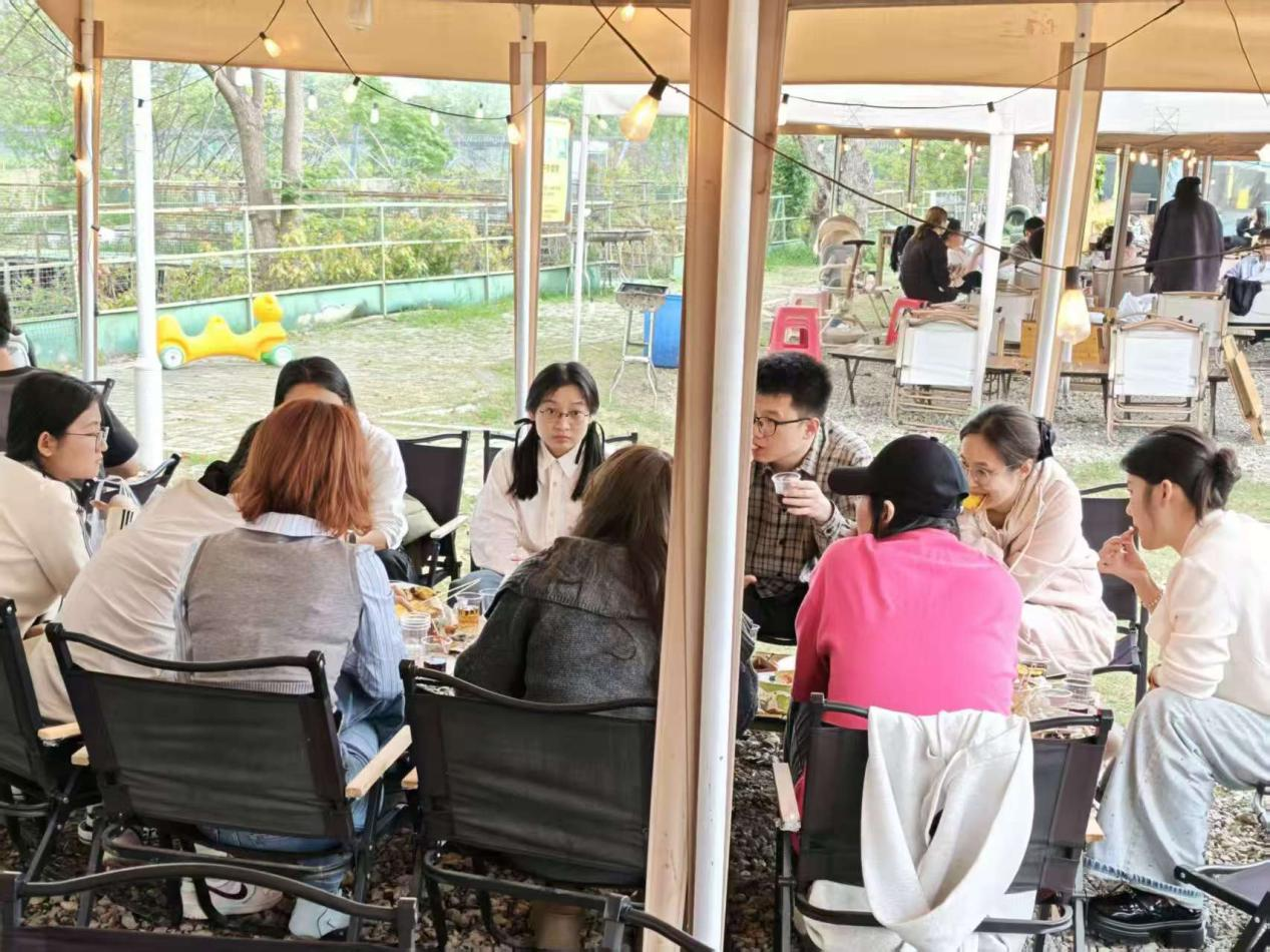 随后,全体成员开展户外素质拓展活动,依托基地特色场景开展红色知识竞答等互动环节,在轻松活跃的氛围中深化理论学习成果,进一步激发党团员的参与热情与学习主动性。活动尾声,同学们围坐开展茶话会交流,畅谈入学以来的成长收获与未来职业发展规划,在温馨和谐的氛围中增进彼此了解、凝聚集体向心力,展现出中国科大MPA学子昂扬向上、团结进取的精神风貌。